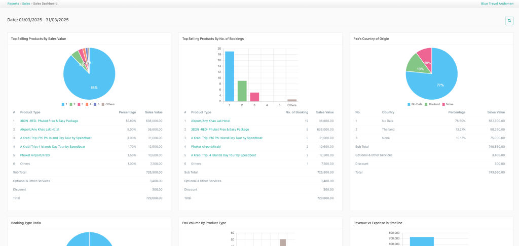 offers powerful reporting and analytics tools with insights into sales, finance, bookings, and customer data. Dashboards track key metrics like revenue trends, booking performance, and outstanding payments. TourSys generates financial reports, customer analysis, and sales forecasts to help businesses make data-driven decisions. With real-time data and visuals, operators can identify growth opportunities, optimize operations, and improve customer services.